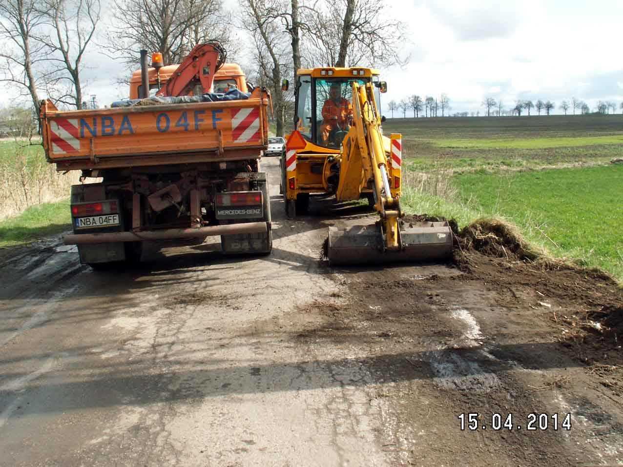 Zbieranie zawyżonego pobocza i remonty cząstkowe na drogach powiatowych